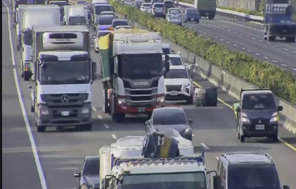 國道1號北上彰化溪湖路段,今(13)日清晨發生一起驚險事故!一輛自小貨車行駛中竟讓塑膠桶「脫逃」,直接滾落中線車道,後方一輛營運半聯結車閃避不及,當場撞上。巨大的撞擊聲響嚇壞附近用路人,所幸這起「天外飛