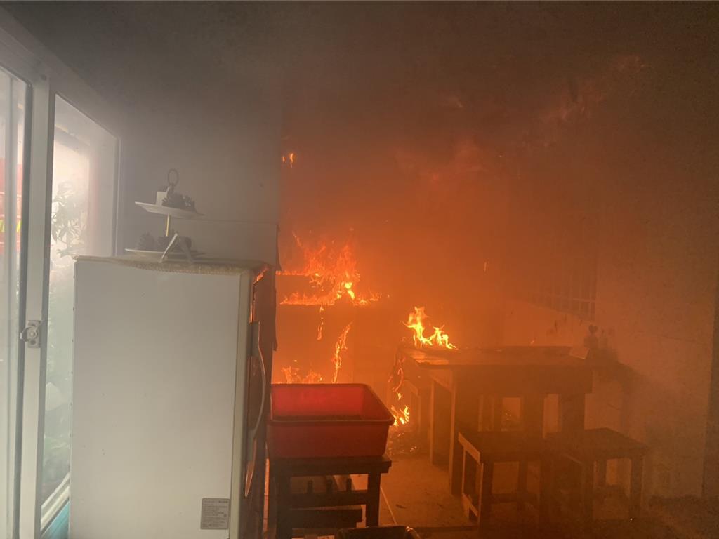 台南永康區中華二路一家麵店日前「火燒厝」,消防局獲報到場出水搶救,8分鐘內迅速撲滅火勢,但整間店包括冷氣、裝潢都遭火舌肆虐,損失不貲,幸無人員傷亡;消防局火調出爐,這場火警源於「星星之火」,原來起火麵