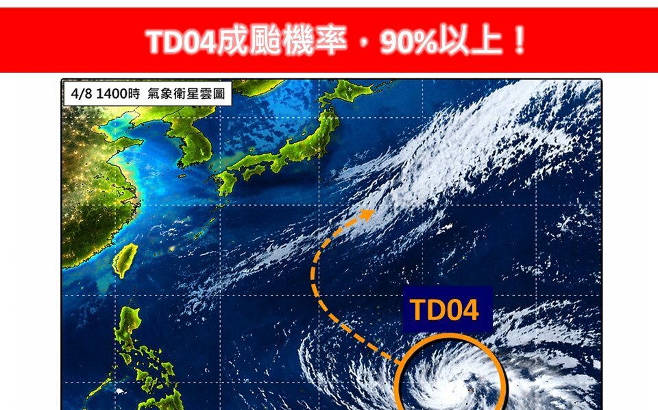 氣象專家指出,位於關島附近的熱帶性低氣壓持續增強,預估24小時內生成今年第4號颱風「辛樂克」,整體環流系統大,強度上看強颱;路徑方面,目前往西移動,下周四(16日)在菲律賓東方,將受北方槽線南下影響開始北