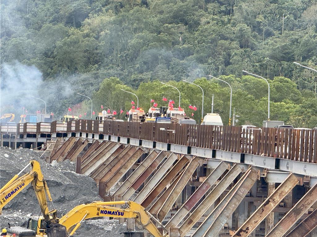 台九線馬太鞍溪橋因堰塞湖洪災遭沖斷後,交通部規劃3階段搶修工程,由公路局先行搭建溪底便道通行,隨後再施作鋼構便橋。原預計今年1月底完工,因工法精進並日夜趕工,提前於今天上午10時開放通車。公路局長林福山到