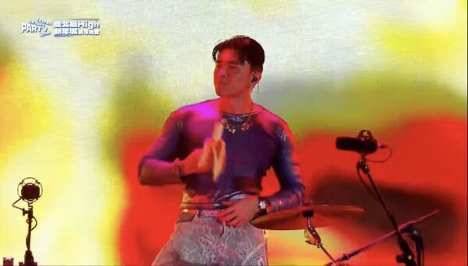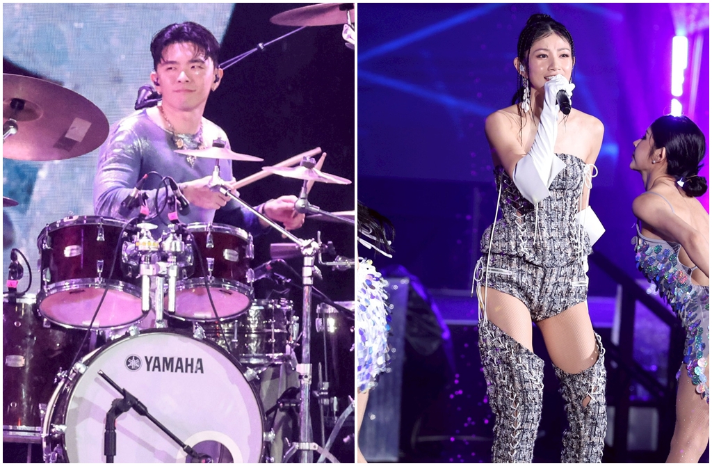 美秀集團受邀擔任「臺北最High新年城-2026跨年晚會」開場表演嘉賓,今晚演出天公不作媒,剛好遇到下雨,但團員們還是頂著低溫,濕身完成演出,台下粉絲熱情也跟著嗨起來,鼓手鍾錡演出到一半,在舞台上大嗑香蕉,為跨年演出增添逗趣畫面。