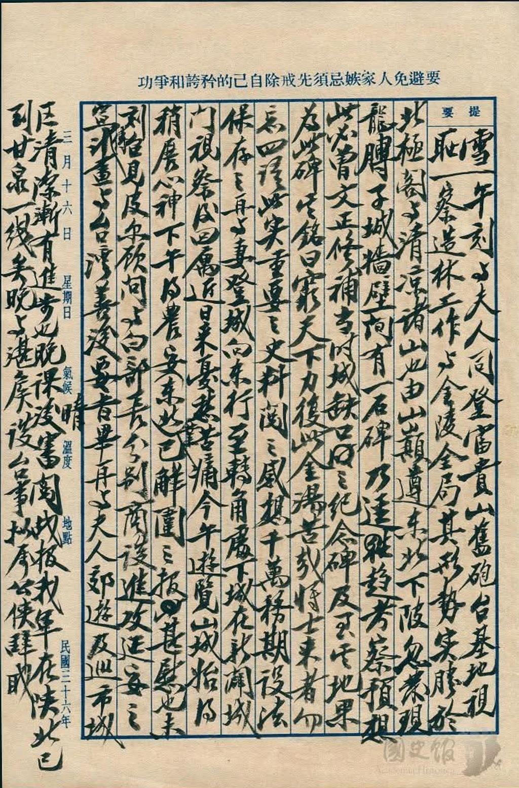國史館今天公開第八批兩蔣日記數位檔,針對二二八事件,蔣中正在日記中表達對行政長官陳儀的處理方式極為不滿,事件過後,他分析暴動是「暴徒共匪脅制」所致,堅信「新復之地與邊省全靠兵力維持」。由於《蔣中正日記