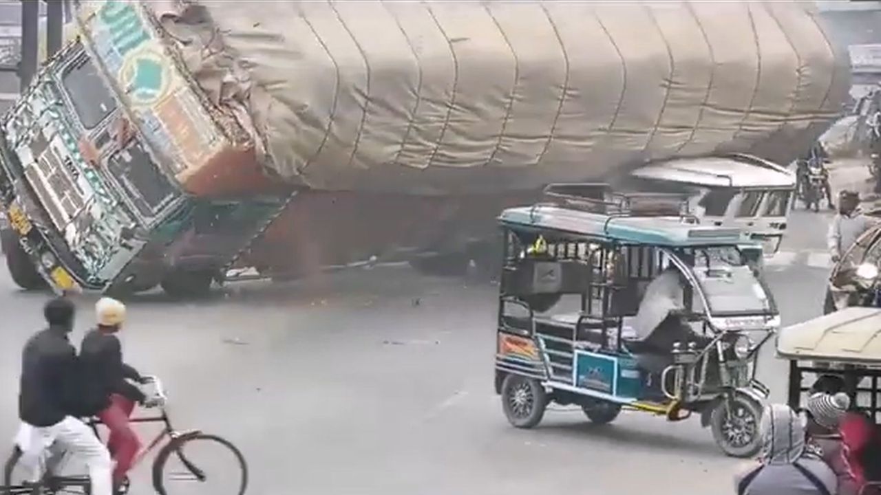 【劉育良/綜合報導】印度北方邦一名司機,日前開著休旅車行經薩哈蘭普爾一處路口時,從外側車道要大迴轉到對向車道,逼得一輛大卡車為了閃避擦撞中央分隔島,結果滿載的卡車反覆直接把休旅車壓扁,休旅車司機當場死亡。