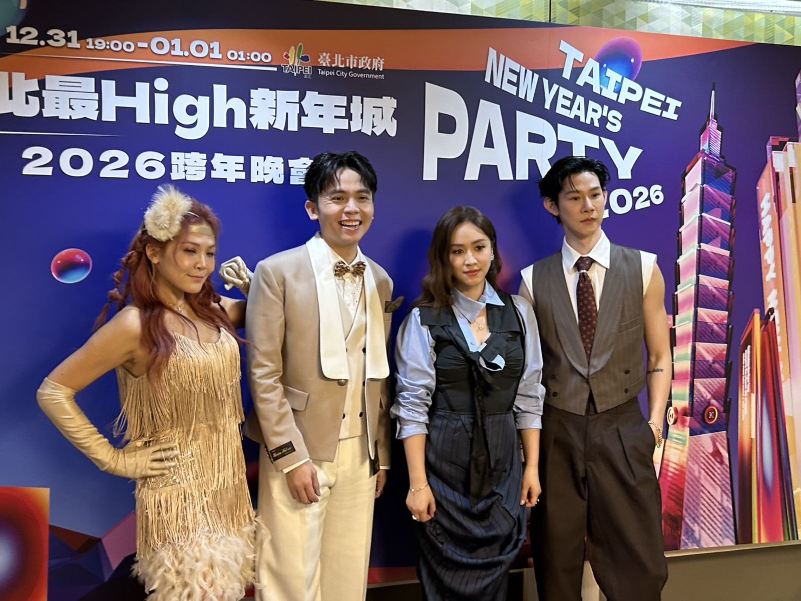 【記者林秭渝/台北報導】「臺北最High新年城-2026跨年晚會」於今(31日)晚間7點登場,由Sandy吳姍儒、黃豪平、夏和熙、圓圓主持。由美秀集團登場為「北跨」拉開序幕,一連帶來多首夯曲〈我要你愛〉、〈懲罰〉、〈捲煙〉、〈偷偷愛〉、〈電火王〉、〈這幾年〉、〈愛情的大壞蛋〉,其中鼓手鍾錡突然在台上吃起香蕉,讓人匪夷所思,對此他透過經紀人也公開了其中的含義。