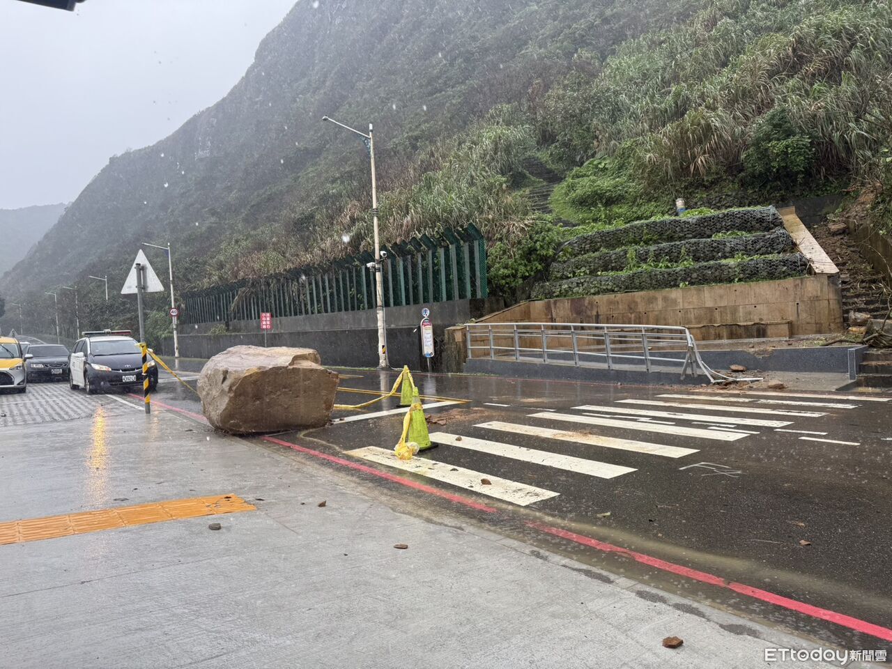 受基隆連續大雨影響,外木山情人湖濱海大道31日上午10時45分許,發生落石意外!一顆體積比小型汽車更大的巨石自山坡滾落,重擊路面,幸未波及人車。目前落石佔據一車道,相關單位已趕抵現場處理,並圍起警戒繩、提醒用路人注意後續落石風險。