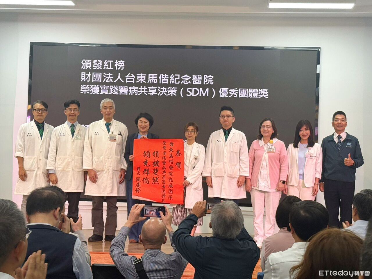 台東馬偕紀念醫院乳癌團隊榮獲「實踐醫病共享優秀團體獎」,台東縣政府於今9日四月份縣務會議暨擴大主管會報中,由縣長饒慶鈴親自頒獎表揚,肯定團隊長期深耕醫療品質與推動以病人為中心照護的努力。