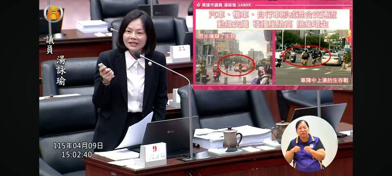 民進黨籍高市議員湯詠瑜為「學妹們」爭取自行車空間,建議市府將五福路人行道改善計畫延長到高雄女中,並評估微拓寬或人車分流,讓學生騎自行車上下學時更安全。湯詠瑜說,去年高雄自行車事故有1575件,死亡21位、其中18位是高齡者,死亡人數與死亡率在六都中偏高。