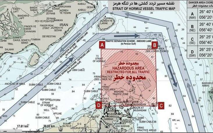 伊朗革命衛隊(IRGC)近日透過國家媒體公布荷姆茲海峽(Strait of Hormuz)重新繪製的船舶交通分隔方案(Traffic Separation Scheme),宣稱為避免船舶碰撞可能存在的海軍水雷,入境船舶必須改走伊朗控制的狹窄通道,即航運界俗稱的「德黑蘭收費站」(Tehran Toll