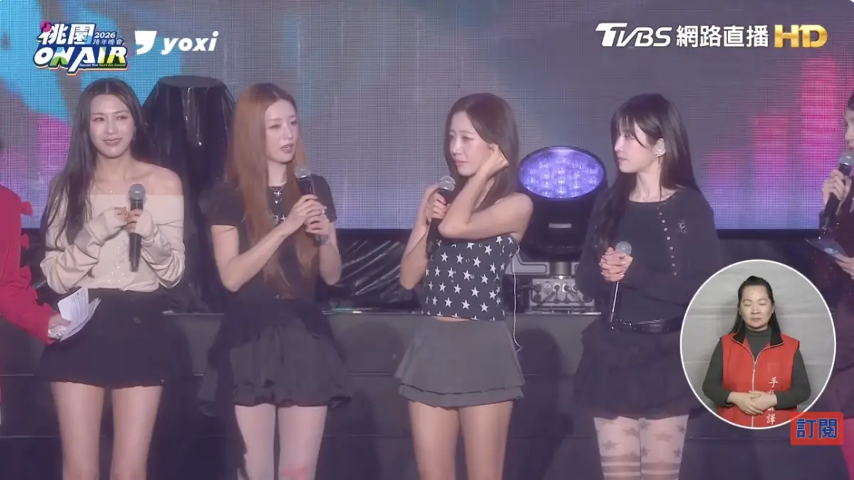韓國人氣女團Apink昨(31)日晚間壓軸登上「2026桃園ON AIR跨年晚會」,朴初瓏、尹普美、金南珠、吳夏榮亮麗登場,引爆Panda(粉絲名)高潮,絲毫不因主唱鄭恩地缺席而...