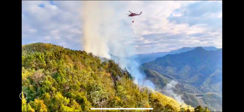 雲林古坑鄉草嶺石壁前天發生山林火災,由於山路崎嶇、水源不足,加上山區乾燥,增加滅火困難度,燃燒面積約八公頃,昨天雲林縣消防局、義消及草嶺村民四十多人到場搶救,空勤總隊出動四機次共十三趟次灑水滅火(見圖,雲林縣消防局提供),昨天入夜後滅火工作暫緩,將在今天持續進行滅火工作,至於火災原因仍有待調查。草嶺村長陳兵通表示,前天早上七點多有村民發現石壁飯店後方竹林冒出濃煙,研判是竹林火災,村民自行滅火但因火勢蔓延快速,因而通報消防局草嶺分隊搶救。