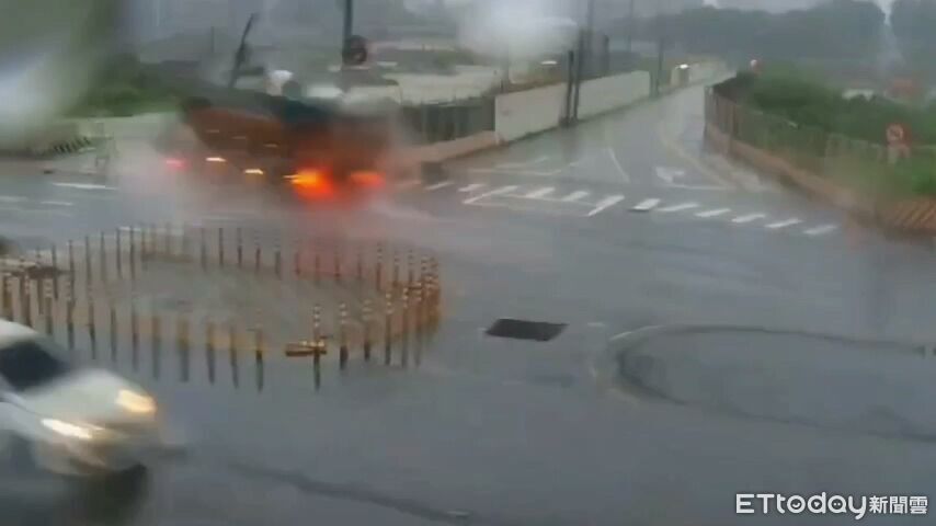 27歲郭男今天清晨6時許駕駛聯結車行經新北市泰山區新北大道六段與台麗街口時,車輛失控衝撞分隔島撞死1名男行人,接著撞斷號誌桿及消防栓後再撞2名保全,釀1死2傷意外。死者身分及死因將待相驗釐清,而當時撞擊監視器畫面也曝光。