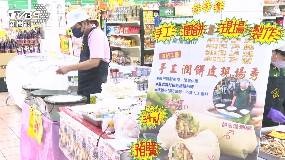 清明節將至,連鎖超市推出手工潤餅搶攻商機,指定門市更有師傅現場製作潤餅皮,員工現包潤餅,傳遞有溫度的生鮮服務。彰化北斗傳承5代的潤餅皮老店家族總動員趕製,連幼稚園就開始幫忙的小學生已有6年打工經驗。不過業者表示,因原物料上漲,餅皮與潤餅售價均有調漲。