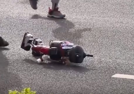 北京亦庄昨9日舉辦的人形機器人半程馬拉松,相較去年進步很多,不過依然出現許多有趣現場。一具暱稱為「小鼻嘎」的參賽機器人,在比賽途中疑似電力不足或程式當機,在賽道上「累趴」罷工,路過的人型機器人停下腳布觀看,甚至還拍手鼓掌,像極了看熱鬧的人類,逗笑現場觀眾。