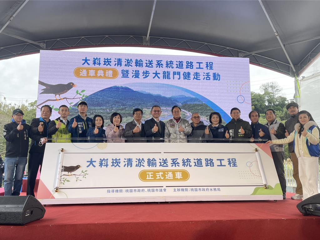 石門水庫每年執行清淤以增加庫容,為避免清淤車輛通行桃園大溪、龍潭市區道路造成交通衝擊,桃園市水務局代辦水利署「大嵙崁清淤輸送系統工程」,新設清淤道路8.46公里,22日由市長張善政主持通車典禮,不僅串聯大漢