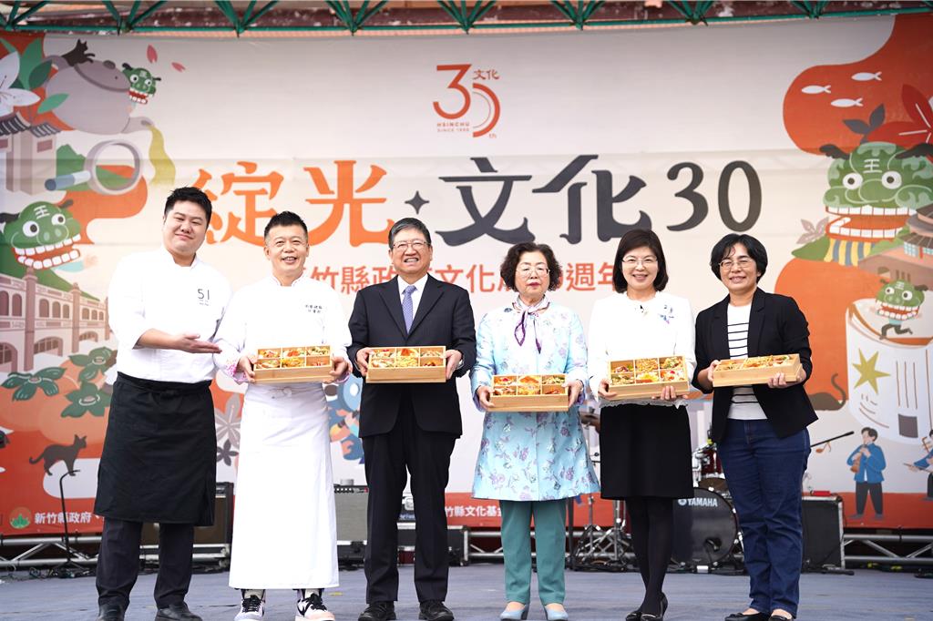 新竹縣政府文化局4日舉行「綻光30」文化聚場暨藝文人士餐敘局慶活動,透過在地客家主廚精心設計的特色料理餐盒及多元藝文表演,款待來自各界的藝文人士,展現新竹縣豐富多元的人文藝術能量,也展現新竹縣的藝文軟實