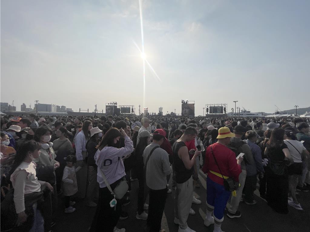 台灣獨家限定活動「媽祖護航!草帽海賊大遊行」今天下午在高雄港旅運中心廣場盛大登場,將海洋冒險精神結合台灣在地信仰文化,吸引上萬名粉絲與網紅齊聚參與,打造前所未見的跨界慶典,遊行活動於下午3點熱鬧展開,《航海王》多位經典角色驚喜現身,包括魯夫、索隆、娜美、香吉士與喬巴等草帽海賊團成員,與粉絲近距離互動,現場氣氛熱烈。《航海王》中經典元素也炫麗登場,包括草帽海賊團的海賊船黃金梅利號、巨型鯨魚拉布,以及巨人族戰士布洛基與東利等人氣角色齊聚高雄港,大甲鎮瀾宮媽祖巡香團更是走在隊伍前方保駕護航,重現作品中熱血與感動交織的經典場面。