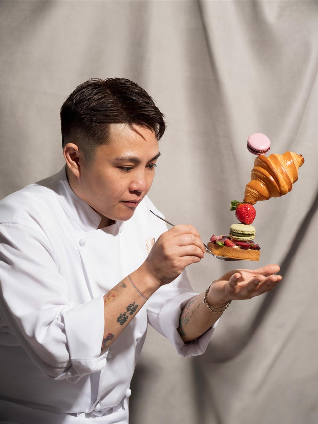 台北文華東方酒店文華餅房,推出全新甜品「扇舞桃韻」。圖/台北文華東方酒店提供台北文華東方酒店新任行政西點主廚胡利雲,以精緻法式工藝為基礎,結合義式製作技法,並融入台灣在地果香與茶韻靈感,為文華餅房推出全新精品級甜點系列。圖/台北文華東方酒店提供台北文華東方酒店迎來新任行政西點主廚胡利雲。圖/台北文華...