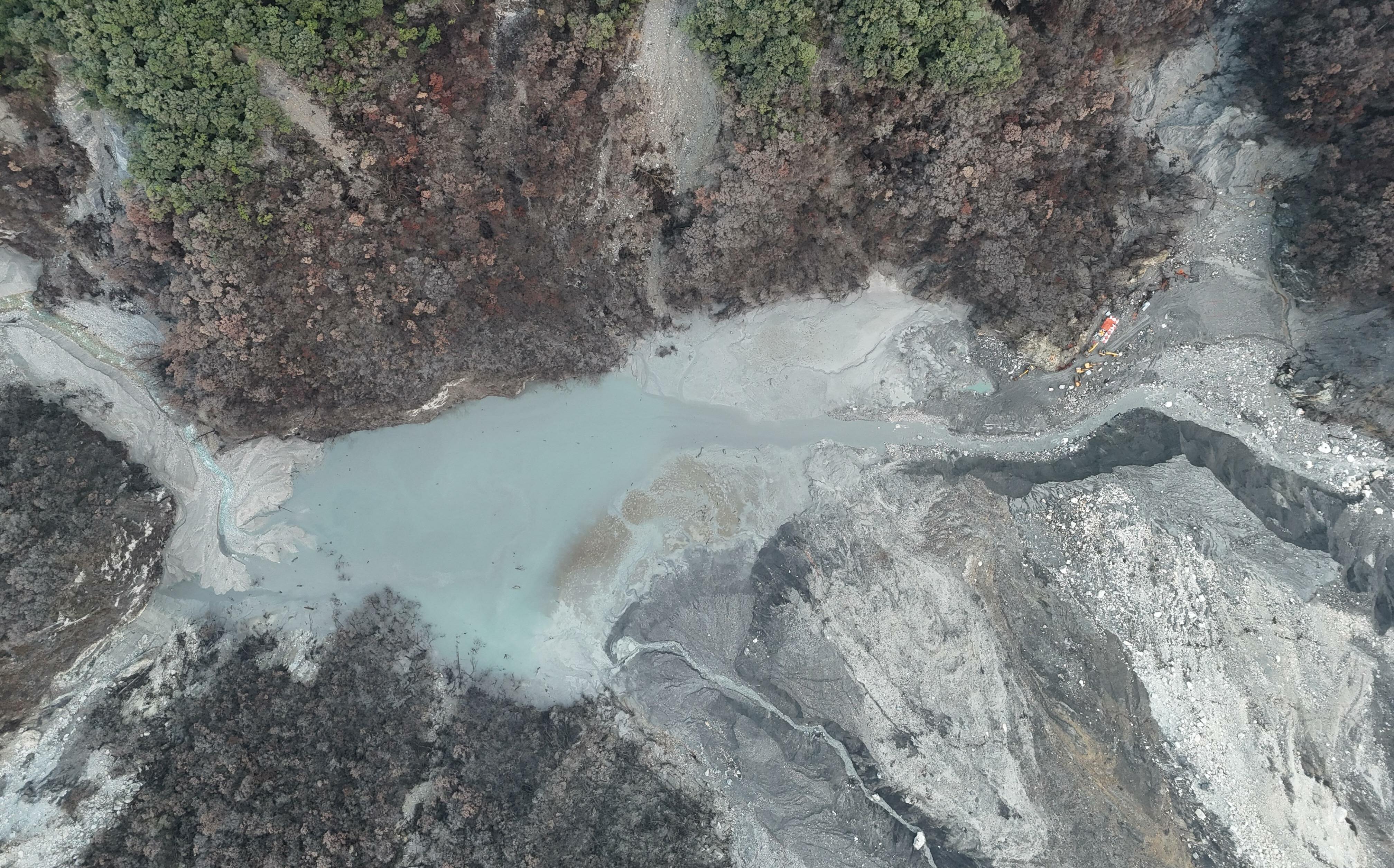 歷經近一個月高風險施工,林業及自然保育署花蓮分署今(26)日公布,已順利完成馬太鞍溪堰塞湖壩體降挖階段性任務,成功將蓄水量從27.9萬立方公尺降至2.6萬立方公尺,從釋出的畫面可見,湖水幾乎見底。參與工程的14名施工人員,也於今日由空勤總隊直升機順利載送撤離,全員平安。林業保育署指出,去年9月23日