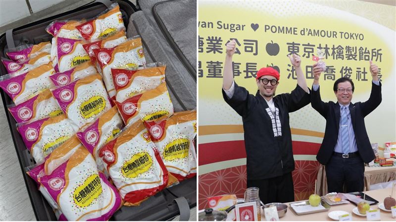 日本蘋果糖專賣店「東京林檎製飴所」社長池田喬俊因狂掃台糖外觀貌似「白粉」的砂糖,返國時被海關盯上而爆紅,他今天造訪台糖公...