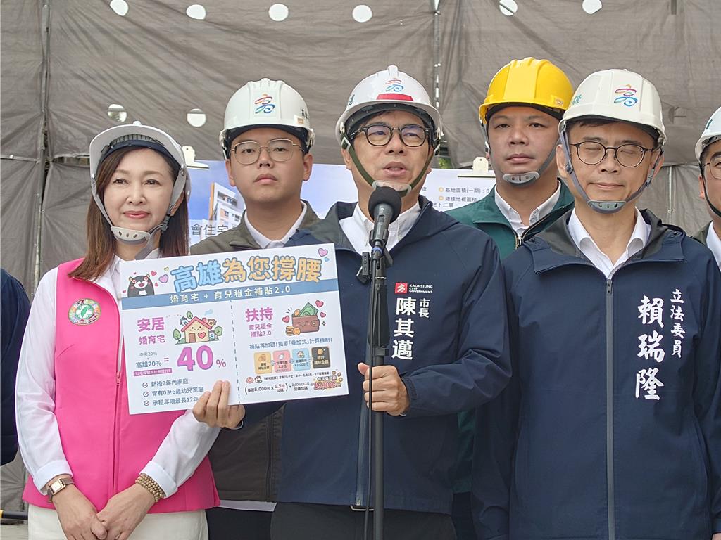 高雄市長陳其邁今天宣布「婚育宅及租金補貼」加碼政策,表示高雄婚育宅比率將由20%加碼至40%,同時擴大育兒租金補貼,預計可照顧1萬2560戶育兒租屋家庭。