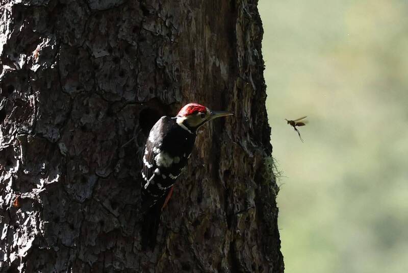 到手的食物飛了!武陵農場員工昨拍到露營區一隻啄木鳥目送昆蟲靠近又飛離,被稱到手的食物飛了,精彩畫面引起網友討論,網友笑稱啄木鳥反應慢半拍。武陵農場臉書粉專小編表示,照片是同事連拍拍到,還「看圖說故事」,寫著「路過就差點變午餐,誰受得了?」