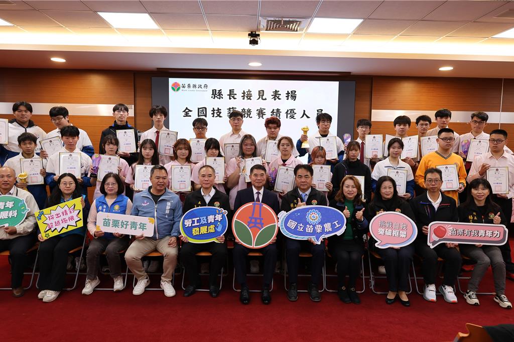 苗栗縣國立大湖農工及苗栗農工兩校學生,日前參加教育部主辦的全國技藝競賽,成績斐然,苗栗縣長鍾東錦26日接見表揚優秀學生。其中大湖農工機械科學生徐浩閔,獲得車床類金手獎第一名,從全國各大高工名校脫穎而出。
