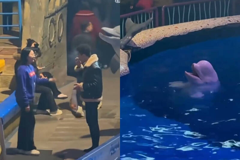 中國大連水族館「聖亞海洋世界」近日傳出,有男子背對水池抽菸,被工作人員制止未果,下一秒竟遭水池中的白鯨從背後「出手」滅火,香菸被噴水澆熄,男子也被潑得全身濕透。綜合中媒報導,事件發生於7日。男子背對水池抽菸,工作人員見狀立即上前勸阻,但男子仍繼續吸菸。就在此時,一旁的白鯨突然躍出水面,對著男子背部大力噴水,菸頭瞬間熄滅,男子嚇得猛然回頭,現場遊客也驚呼連連。