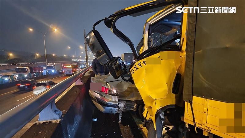 國道1號北上18.8公里處、靠內湖交流道,今天晚間近7時發生1輛小貨車與1輛轎車碰撞事故,小貨車男駕駛受困駕駛座,消防隊...