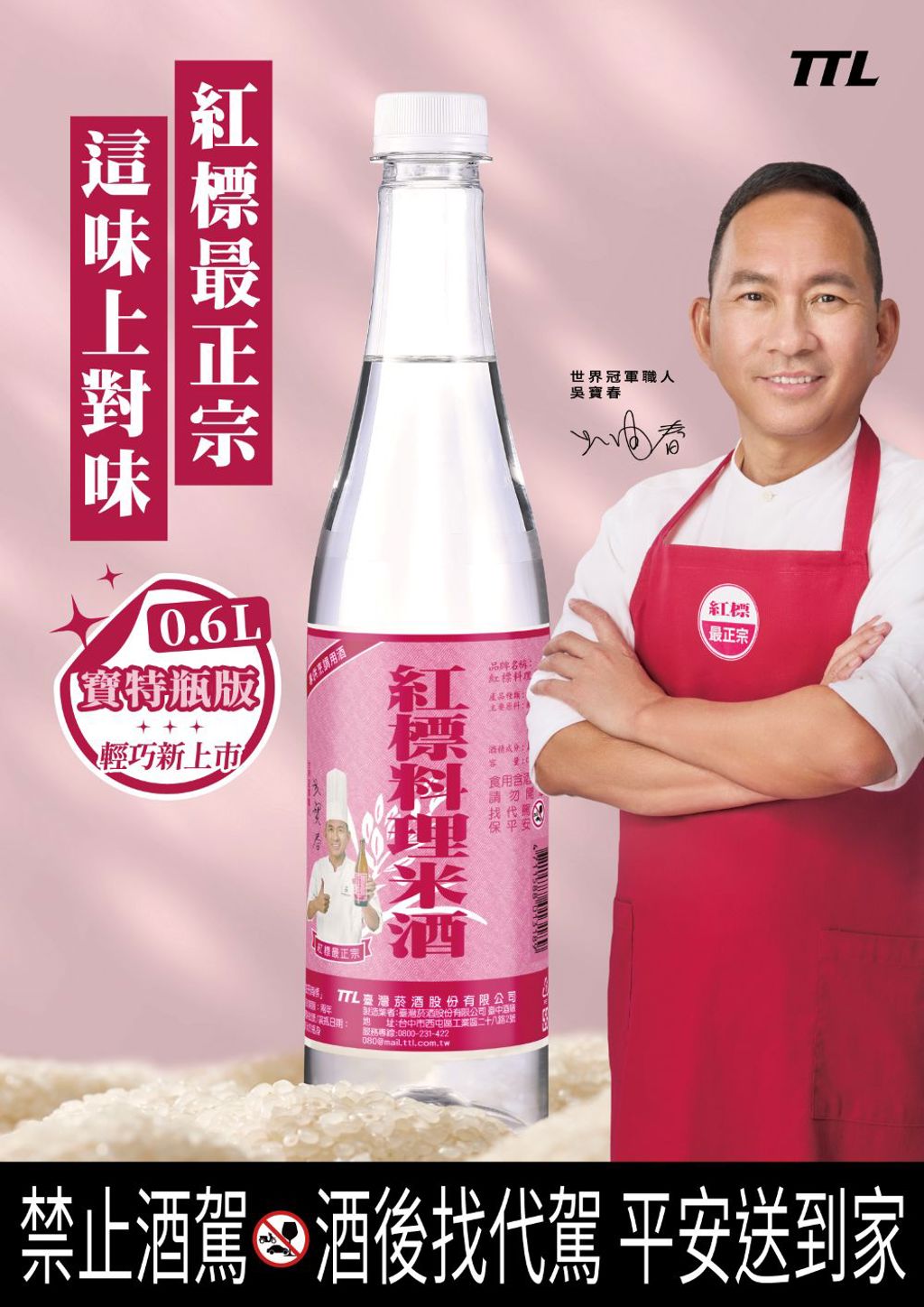 臺灣菸酒公司的明星產品「紅標米酒」,為了回應消費者對便利性的期待,讓米酒能以更輕巧的形式融入日常生活中,特別將俗稱「紅標」的經典產品「0.6公升紅標料理米酒」推出寶特瓶包裝,提供消費者外出及戶外料理等多元情境下的使用需求,有更多元的選擇。 新版「0.6公升紅標料理米酒(寶特瓶版)」將於115年2月4...