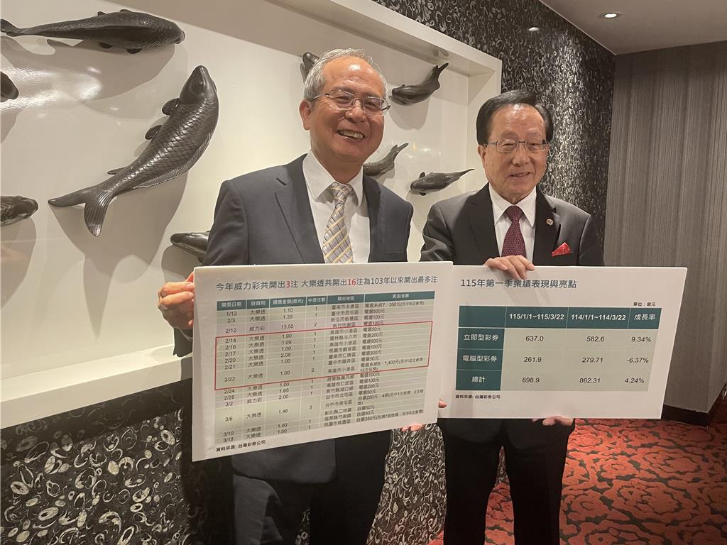 台灣彩券114年締造公益彩券史上單年度業績新高後,今年第一季表現依舊穩健成長,截至3月22日止,115年公益彩券累計銷售金額達新台幣898.9億元,較去年同期862.31億元成長4.24%,續創同期新高。 其中,立即型彩券表現尤為亮眼,累計銷售達637億元,較去年同期成長9.34%,不僅創下同期新高...