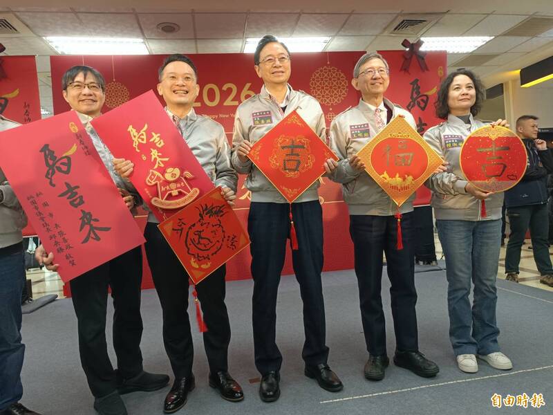 桃市府今(6)日發表丙午馬年新春春聯、福袋及紅包,2款春聯「馬載祿厚」、「馬吉來」大玩諧音哏,並延續蛇年春聯書寫,再次邀請在地書法藝術家王鈺權操刀,「元氣搖搖馬」福袋、紅包袋也融入動態機關設計,可以搖搖馬兒招好運,桃園市長張善政表示,每年春聯都絞盡腦汁發揮創意,不但有過年的氣氛,且要讓大家看了會心一笑,2款春聯將透過市府各據點發送,福袋將在過年期間於宮廟祈福參香時發送給民眾,同時祝福大家「明仔載愈好」、「馬吉來」。2款春聯「馬載祿厚」由張善政署名、「馬吉來」由張善政與議長邱奕勝署名,「馬仔祿厚」將馬字化為昂首奔騰的駿馬,文字寓意「馬能載德,祿厚為基」,也似台語諧音「明仔載愈好」,寄託對未來一年越來越好的期盼,「馬吉來」象徵馬年吉祥到來,以台語朗讀也蘊含「欲錢來」、「麻吉來」的雙重祝福,期盼民眾財運亨通、親友相聚。