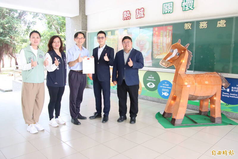 嘉義縣太保國民中學師生2026台灣燈會期間以花燈「扭頭馬面-馬盯尼」爆紅,肯定師生藝術創作表現的民主進步黨籍立法委員蔡易...