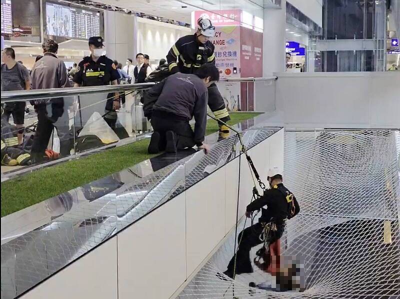 桃園機場今天中午發生7歲幼童在入境大廳自行跨越北側電扶梯圍籬跳下防墜網,後經警消協助脫困,機場公司呼籲家長應隨時留意幼童...