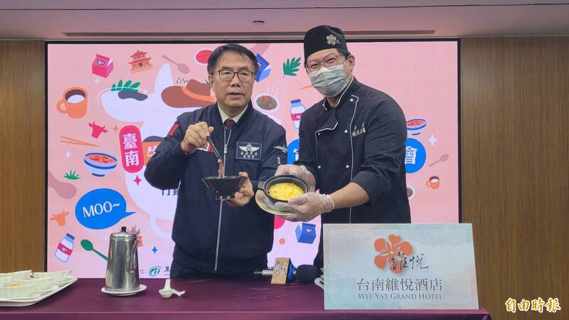 台南市「牛仔沖沖滾-2025國產牛肉暨鮮乳行銷活動」將於12月14日在善化啤酒廠盛大舉辦,不僅有人氣清燙牛肉湯名店集體到場開鍋,並首次加入鮮乳與羊肉等多元畜禽產品展售,打造前所未有的在地食材饗宴。市府今天舉辦活動行前宣傳,市長黃偉哲攜手維悅酒店主廚謝思欽現場示範道地的台南清燙牛肉湯,熱湯一沖鮮肉瞬間轉粉紅,現場香氣四溢令人食指大動。黃偉哲熱情邀請全國民眾到台南「喝好湯、品好乳、買好貨」,保證值得滿載而歸。