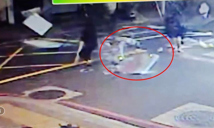 【記者曾佳俊/新北報導】新北市板橋區府中商圈「定食8」餐廳今(8)日凌晨近1時發生疑似氣爆事件,整個2樓幾乎炸毀,外牆招牌、瓦礫玻璃等碎片噴濺路面,造成5名路人受傷送醫,畫面曝光令人怵目驚心;而不僅如此,除了案發現場天花板混凝土鋼筋裸露、外牆牆體損毀傾倒慘況外,其3樓也有天花板裝修崩落、地板隆起的狀況;另外爆炸的震波衝擊周邊住戶,截至中午目前共有20戶登記,仍在持續增加中,包括有外牆鐵門、門窗玻璃與室內家具受損,更誇張的有室外冷氣被震飛進了屋內,導致客廳受損嚴重。