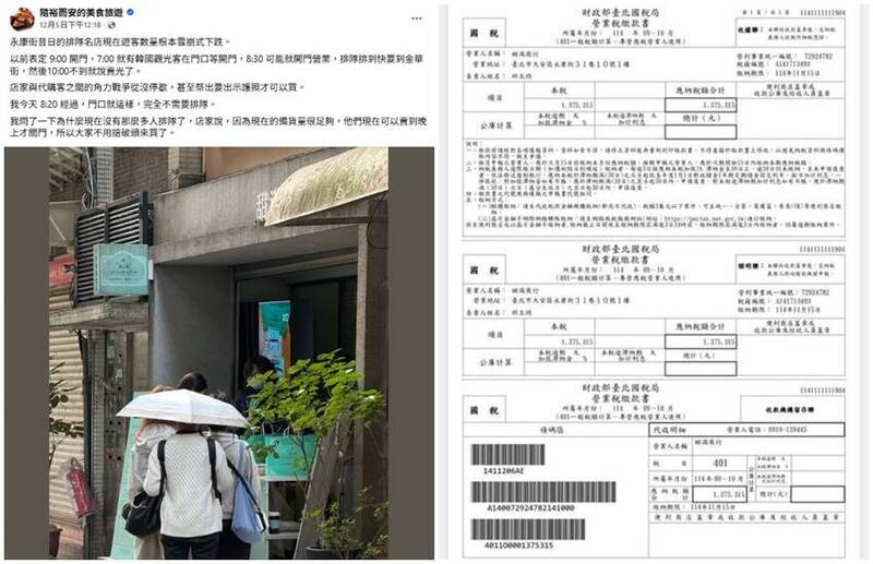近日一名在臉書有5萬多人追蹤的美食部落客,在粉專發文嘲諷某名店因為支持下架選區的國民黨立委,大罷免宣告失敗後排隊人潮「雪崩式下跌」,業績受到重創,結果釣出當事店家貼出營業稅繳款證明狠狠打臉!粉專「隨裕而安的美食旅遊」5日貼出北市大安區永康街牛軋餅排隊名店「甜滿」店外稀稀落落排隊顧客的照片,「永康街昔日的排隊名店現在遊客數量根本雪崩式下跌。以前表定9:00開門,7:00就有韓國觀光客在門口等開門,8:30可能就開門營業,排隊排到快要到金華街,然後10:00不到就說賣光了。店家與代購客之間的角力戰爭從沒停歇,甚至祭出要出示護照才可以買。我今天8:20 經過,門口就這樣,完全不需要排隊……」