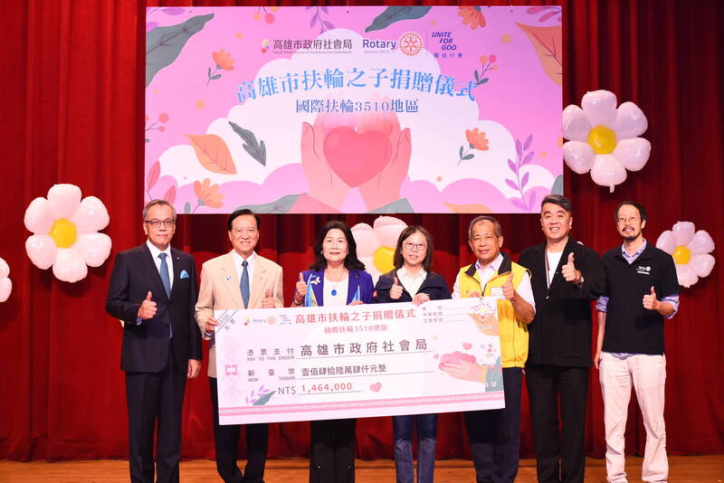 國際扶輪3510地區自2011年起認養高雄市弱勢兒少,提供生活扶助金,協助家境困難的孩子們就學階段的基本所需,迄今共1萬944名兒少受惠,認養金高達1億3132萬餘元,今年國際扶輪3510地區偕33個扶輪社認養社會局服務的119名兒少,認養金達146萬餘元。為感謝國際扶輪社熱心公益,高市社會局今(7)日於婦幼青少年活動中心辦理捐贈儀式,並安排兒少們與認養社友相見歡,兒少們送上親手寫的感謝卡,向扶輪社友表達感激之情。