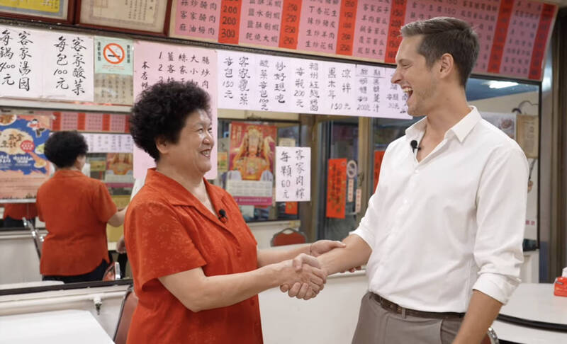台北市客委會舉辦「2025台北客家美食節」,並邀請勤學客語的美籍藝人賈斯丁(Justin Caleb Cooper),透過台北客家美食地圖,親自走訪人氣票選前四名店家,並發布「客家美食地圖探店影片」。賈斯丁透過自然流利的客語,與店家老闆閒話家常,不僅展現了客家菜的經典,更讓全球觀眾看見台北客家美食從傳統桌菜、經典熱炒到創新麵食的多元面貌。客委會表示,本支宣傳影片特別製作了華、客、英、日、韓、泰等六種語言字幕。無論是熟悉台北的在地人,還是初次造訪的國際旅客,都能透過影片與地圖的指引,跨越語言與地理的隔閡,按圖索驥深入城市的紋理,品嚐最真實的客家風味。客委會表示,今年首屆舉辦的客家美食節,招募超過40間特色店家參與。在影片中,賈斯丁帶領觀眾一探究竟,挖掘隱身在台北街頭的客家美味。行程首站來到「大烹小饌」,賈斯丁大啖軟嫩Q彈的客家豬腳與鹹香下飯的鹹蛋苦瓜。