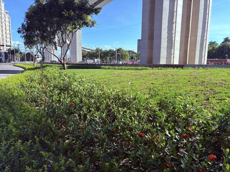 新北市政府推動「城市綠美學」政策,近期改造五股區台64線快速道路下方的閒置土地,透過跨局處合作,完成土地整理及綠化工程,配合地形種植不同顏色和空間層次的植栽,打造城市綠廊,提升居民生活品質,為當地環境帶來更多「綠」動感。新北市政府綠美化環境景觀處表示,五股區成洲七路附近一帶原為64快速道路闢建後的閒置土地,市府推動「城市綠美學」政策,結合工務局及五股區公所等單位,進行土地整理及綠化工程,導入減法設計,以複層方式種植多年生的低矮灌木,形塑豐富有層次的綠化空間景觀,維持視覺通透性。