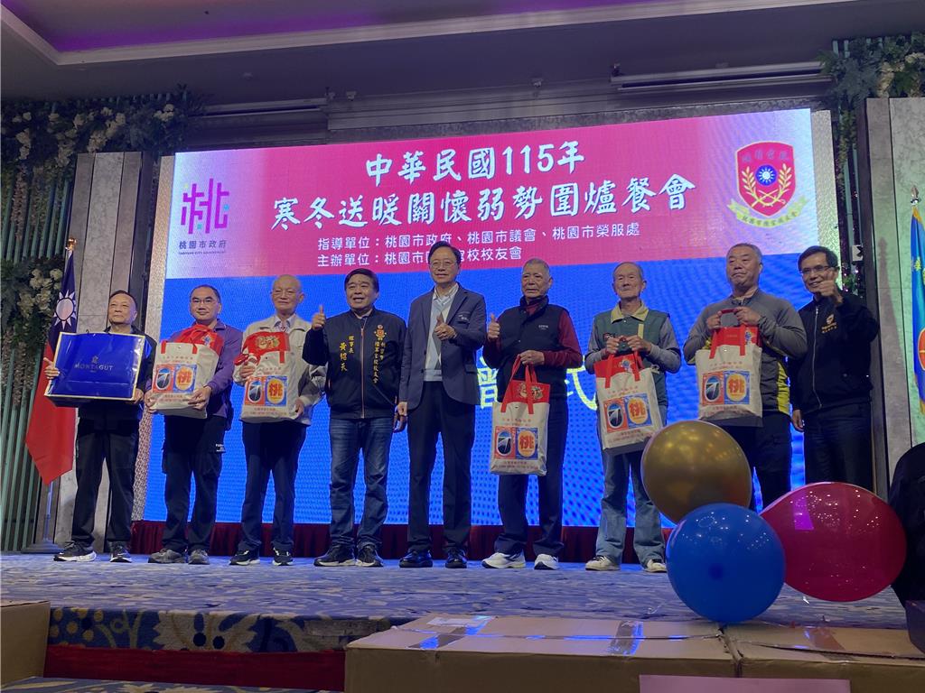 農曆春節將至,為讓高齡、獨居及生活困難的榮民眷感受過年溫暖,桃園市民政局聯合榮民服務處與陸軍官校校友會,5日舉辦「寒冬送暖關懷弱勢圍爐餐會」,席開35桌超過百人歡聚一堂。市長張善政與會時說,感謝陸軍官校