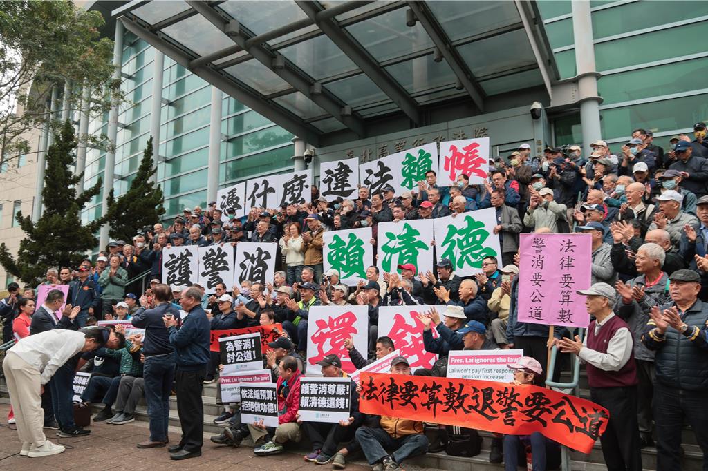 去年立法院三讀通過《警察人員條例》,但民眾黨主張,政府至今依然違法不編列預算,導致退休警消每月短少數千元退休金,為捍衛警消尊嚴與權益,民眾黨與百名退休警消5日一起到台北高等行政法院,遞狀提起團體訴訟,