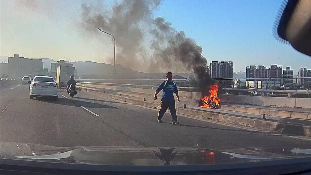【記者張沛森/桃園報導】桃園警分局小檜溪派出所警員曾紹峻與許修豪昨天(4日)下午因公務前往新北市土城區,返程行經浮洲橋時,發現外側機車道電動機車發生火燒車,立即停車以警車配備的滅火器協助撲滅火勢,適時阻止災害擴大。