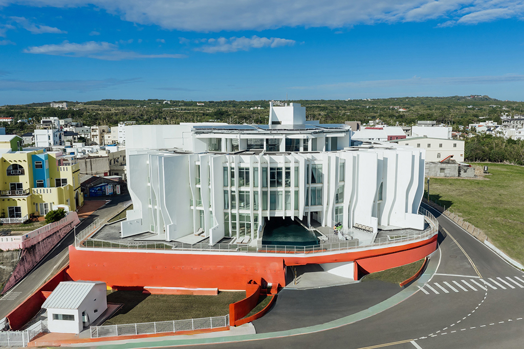 建築由知名設計師楊秀川操刀,以「珊瑚碎形結構」為靈感,將海洋意象轉化為流線型純白量體。錯落交疊的牆面與圓弧屋頂模擬浪潮起伏,使建築自然融入後壁湖海岸線,成為新興的視覺地標。 室內空間延續溫潤基調,以柔和色系搭配木質與暖金元素,營造低調奢華氛圍。客房最小13坪起,海景房設有陽台與大面落地窗,讓旅客在房...