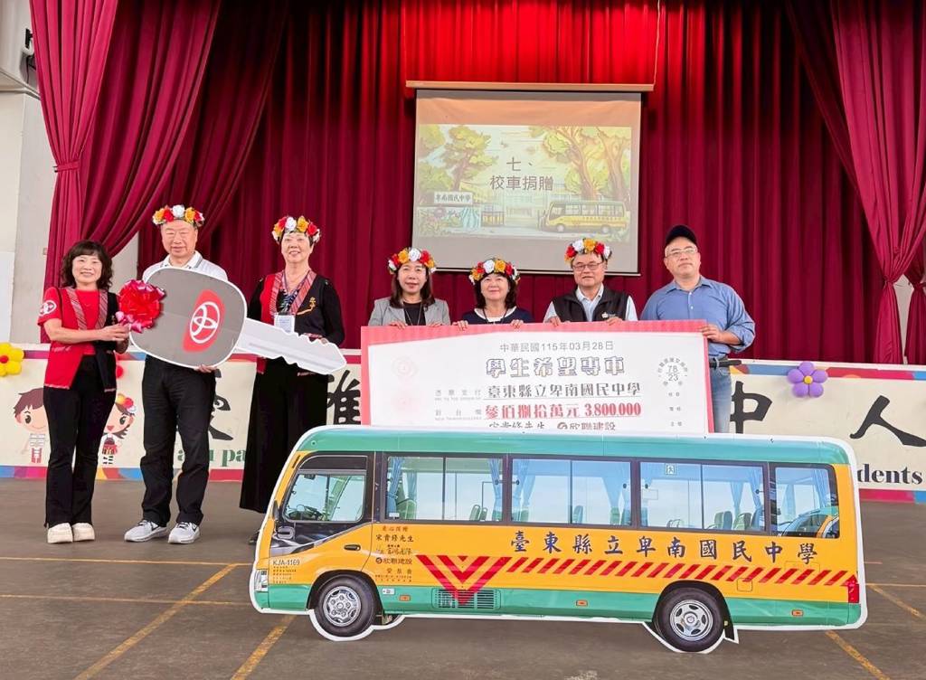 楊美娟理事長長期投入教育與公益事務,關注學生學習環境與資源公平。此次在了解卑南國中因地處偏鄉、交通不便影響學生就學後,主動發起募款行動並整合社會資源。她表示:「教育的機會不應受到地理條件限制,每一位孩子都值得擁有安全穩定的求學環境。」在其積極推動下,成功串聯各界力量,促成此次校車捐贈。 本次捐贈之校...