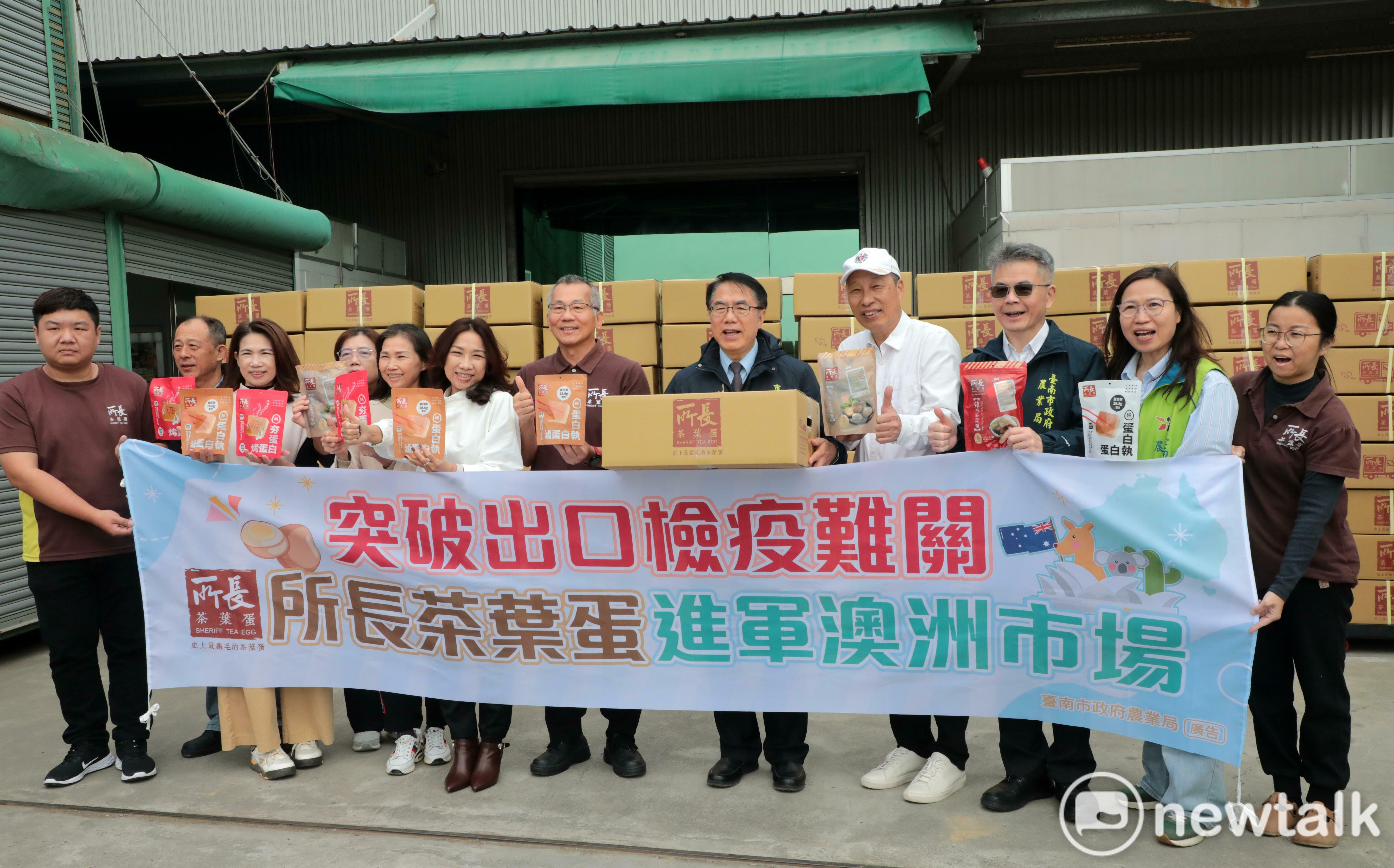 以獨特滷製工法與濃郁風味聞名的台南知名品牌「所長茶葉蛋」繼2025年成功將豆干產品外銷澳洲,近日再傳百萬訂單捷報,今(2)日舉行封櫃記者會,台南市長黃偉哲特別出席支持,肯定所長茶葉蛋成功通過層層檢疫與法規限制,為台南農特產品外銷寫下重要新頁,是另類的台南之光,也期許透過市府與業者共同努力,讓台南農特