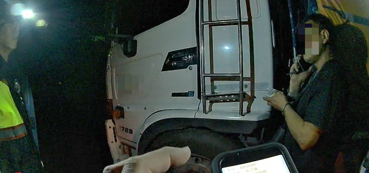 【記者鮮明/台中報導】台中市和平警分局日前在台8線中橫公路執行擴大臨檢勤務,發現1輛大貨車行跡可疑,遠遠發現臨檢告示後隨即靠路邊停車,遲遲不敢駛入檢查區,員警上前盤查,赫見石姓司機竟同時遭到全台12個地檢署及地院發布通緝,逃亡2年期間以駕駛大貨車全台送貨躲避追緝,沒想到竟在和平山區落網。