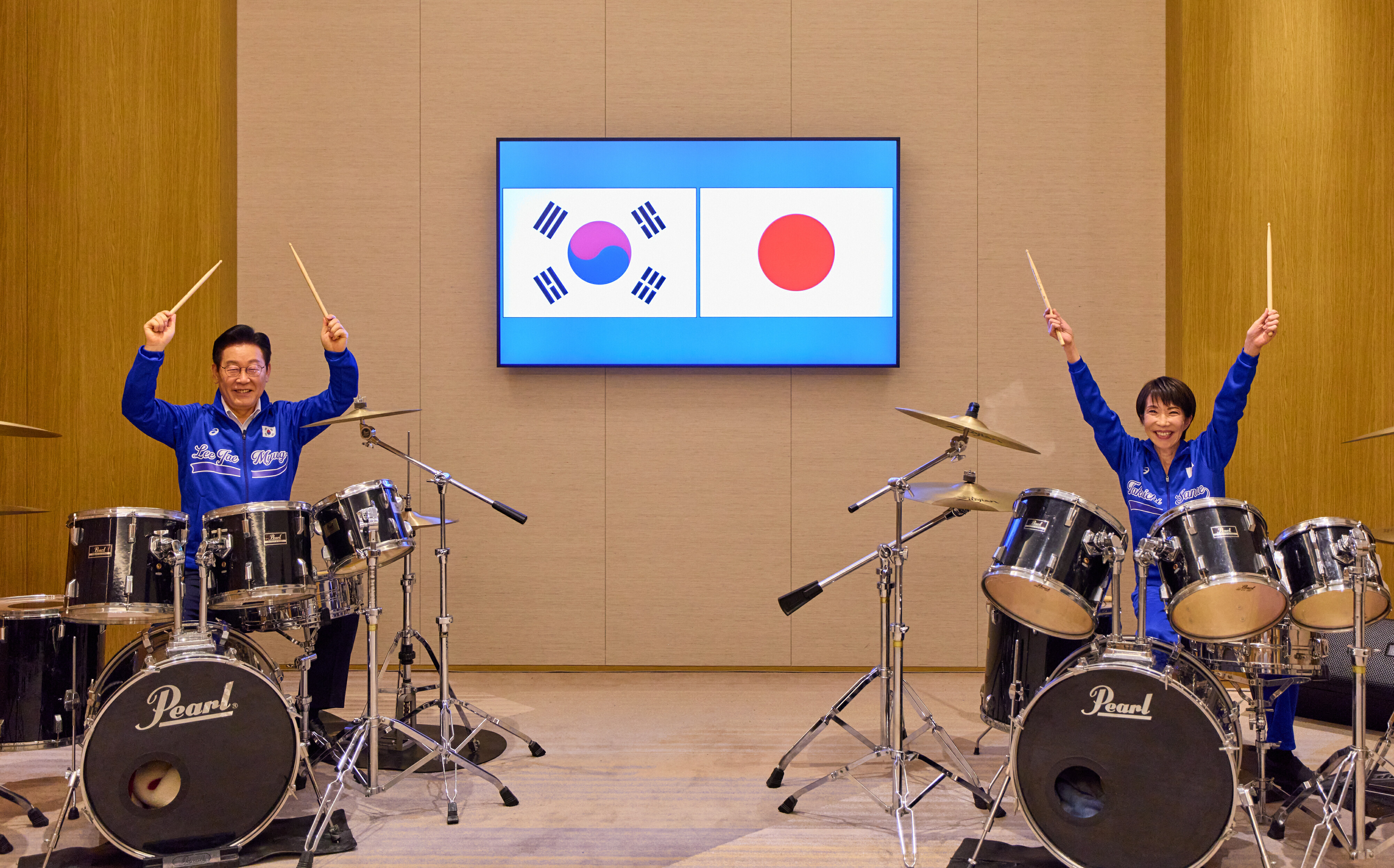 日本首相高市早苗 13 日在故鄉奈良接待南韓總統李在明,雙方完成領袖會談後,日方特別安排一段事前未對外公開的驚喜橋段。兩人同台坐上爵士鼓,即興合奏韓國天團 BTS 的〈Dynamite〉,以及近期爆紅的 Netflix 動畫《Kpop 獵魔女團》插曲〈Golden〉,現場氣氛輕鬆歡樂。過去高市早苗於