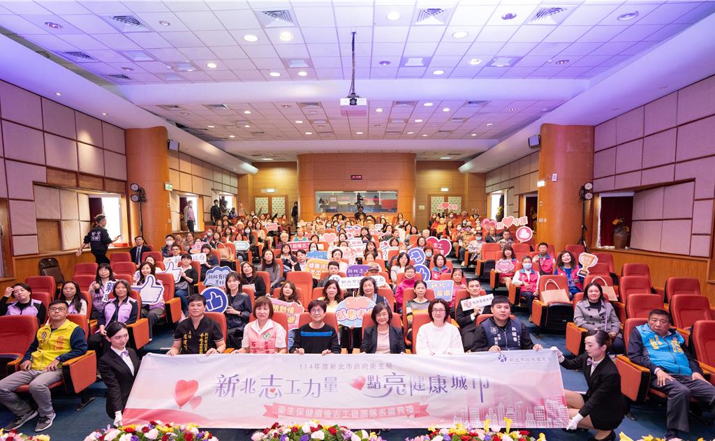 新北市現有衛生保健志工4772人,總服務時數超過57萬小時、服務人次逾500萬人次,新北市衛生局5日舉行衛生保健績優志工暨團隊表揚典禮,衛生局長陳潤秋頒發1位特殊貢獻獎、79位永恆白金獎及11隊志工運用單位評鑑優等