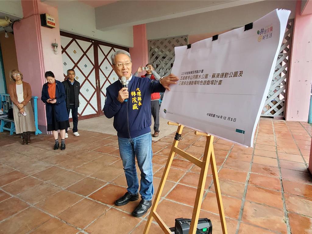 宜蘭縣政府盤點轄內風景區、公園綠地,將在五結鄉冬山河親水公園、蘇澳鎮運動公園、三星鄉綜合運動場等3處建置特色遊戲場,其中冬山河親水公園結合作家黃春明的童話作品《巨人的眼淚》,規畫巨人手臂好漢坡等設施,