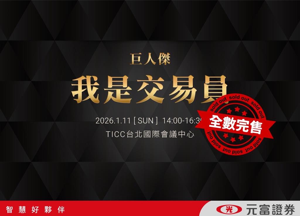 台新新光金控旗下元富證券日前宣布,攜手台股傳奇交易者—巨人傑,將於 2026 年 1 月 11 日在 TICC 台北國際會議中心舉辦年度重磅財經講座《我是交易員—巨人傑》。消息甫公開即在投資圈引爆話題,3,100 張門票於一小時內秒殺完售,深夜搶票潮更瘋狂洗版各大社群平台,此次盛況被市場譽為「202...